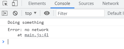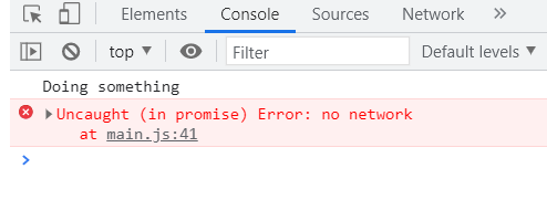 이 경우 .catch() API에서 error로 new Error('no network')를 매개변수로 받아온 것을 어떻게 처리할 것인지 작성한다.