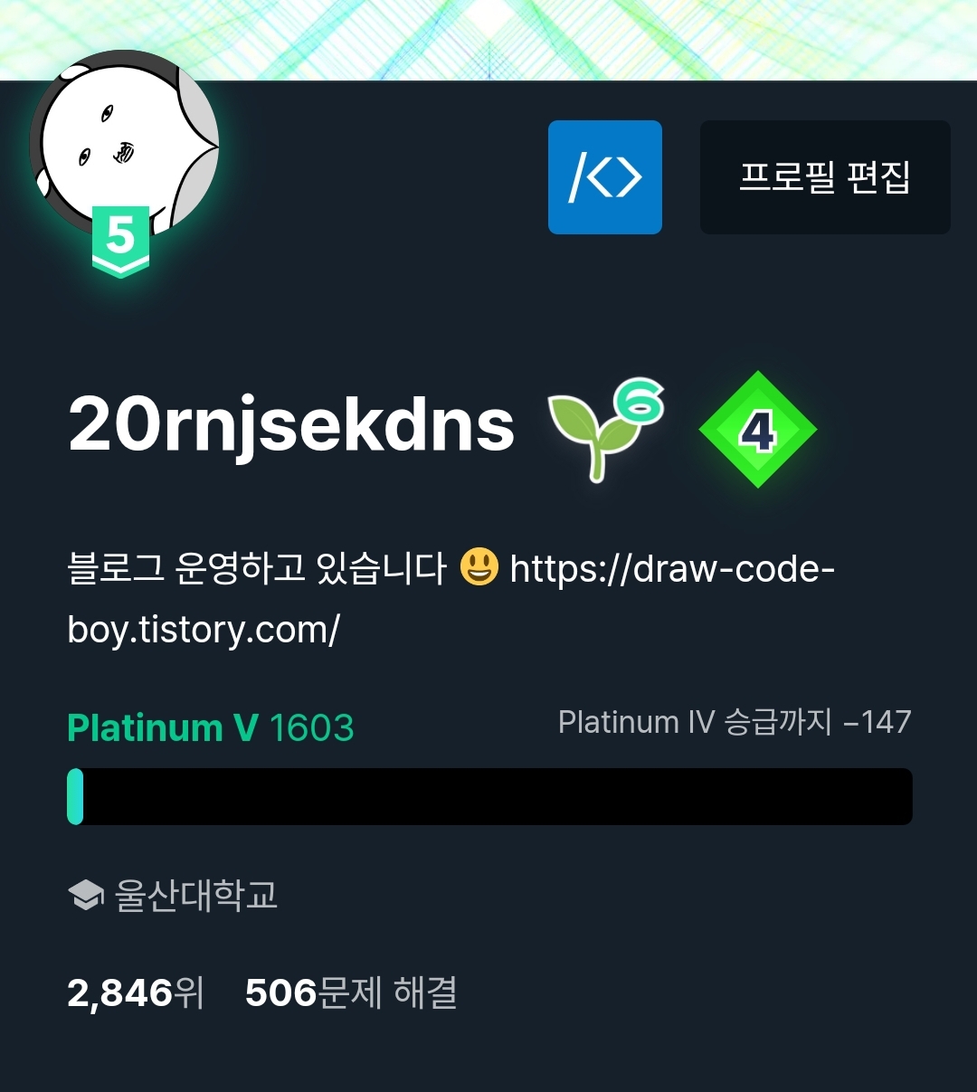 성공적으로 올해 최종 목표 '백준 플래티넘' 이루어냈다!