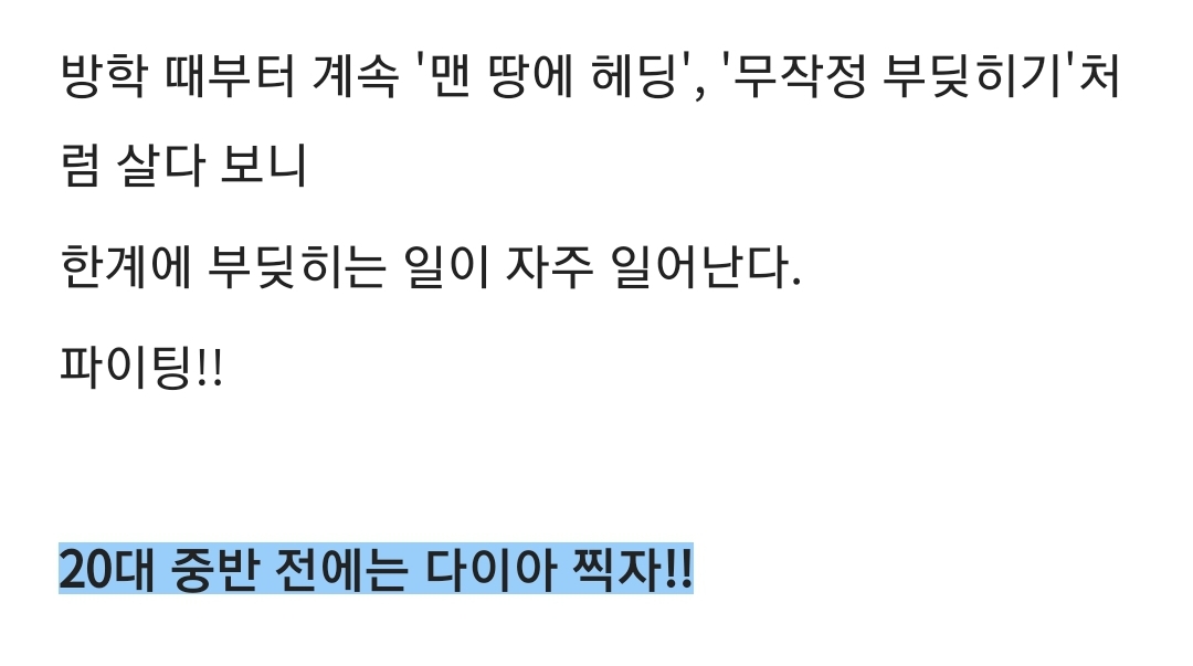 '무슨 일이 있었다.' 같은 내용은 기록이 되지만 이를 바탕으로 염두하던 생각이나 앞으로의 계획을 적는 게 지난번부터 그랬듯 회고록의 메인이벤트다.