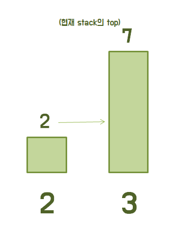 그리고, 2는 현재 스택의 top 7보다 크지 않기 때문에 조건문을 통과하지 않는다.