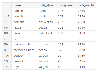 cols = ["make", "body_style", "horsepower", "curb_weight"]