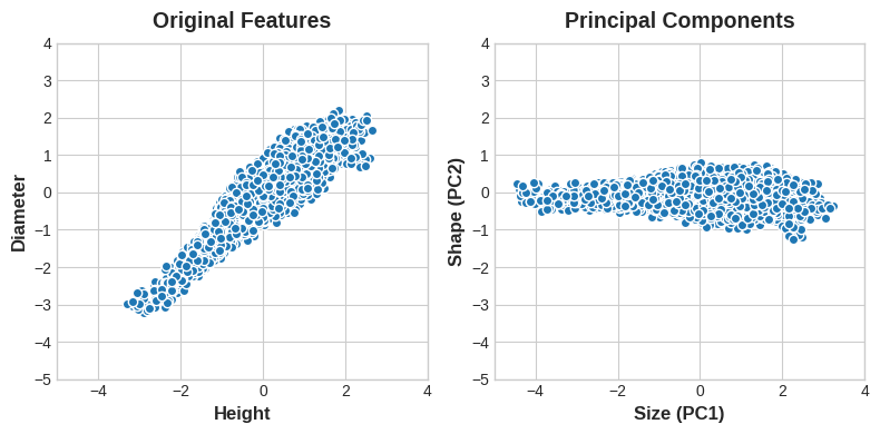 'Height'와 'Diameter'로 abalone을 표현하는 대신 'Size'와 'Shape'로도 figure를 표현할 수 있습니다.