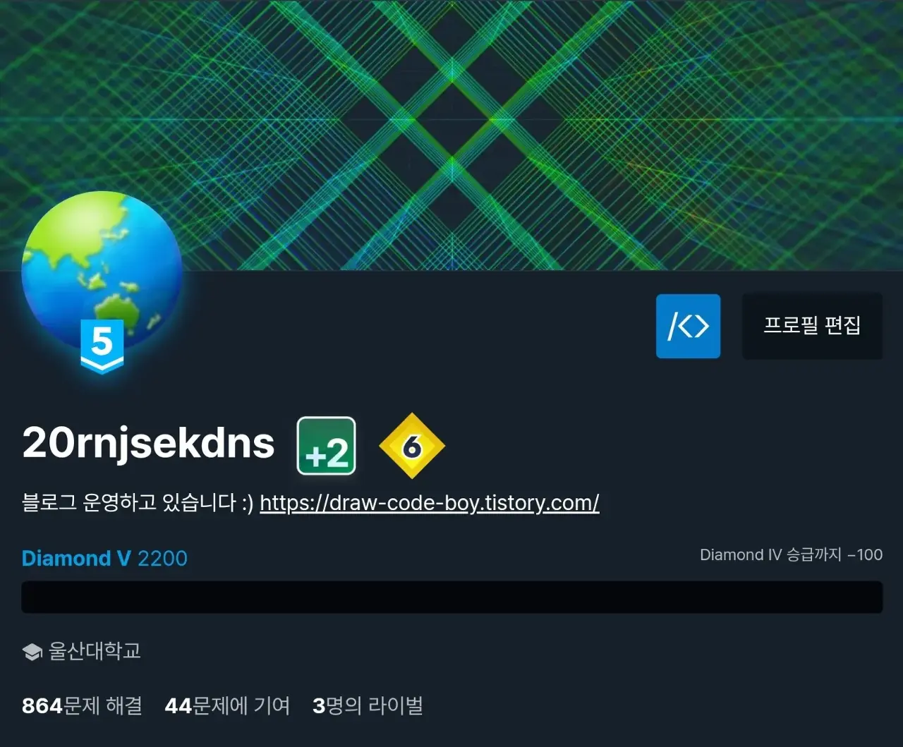 저는 아직도 제가 뭘 하고 싶은지 정확히 몰라서 미래에 대한 판단이 잘 서지 않습니다. 그렇다고 또 재밌는 것만 하기에는 현실을 돌아봐야 하고, 끝없이 스스로에 대한 의구심을 버릴 수는 없습니다. 백준을 시작한 지 1년, 다이아가 될 거라 생각도 못 했는데 또 앞으로 1년도 어떻게 될지는 모르겠지만 또 목표가 생기면 열심히 달리겠습니다. 1년 동안 스스로 배운 여러 가지들을 통해 더 나은 길을 걸을 수 있게 된 거 같습니다.