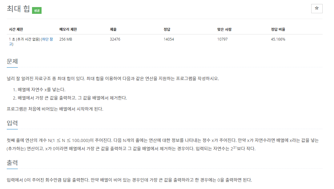 [자료구조] 백준 11279번: 최대 힙 (C++), 우선 순위 큐 사용 본문