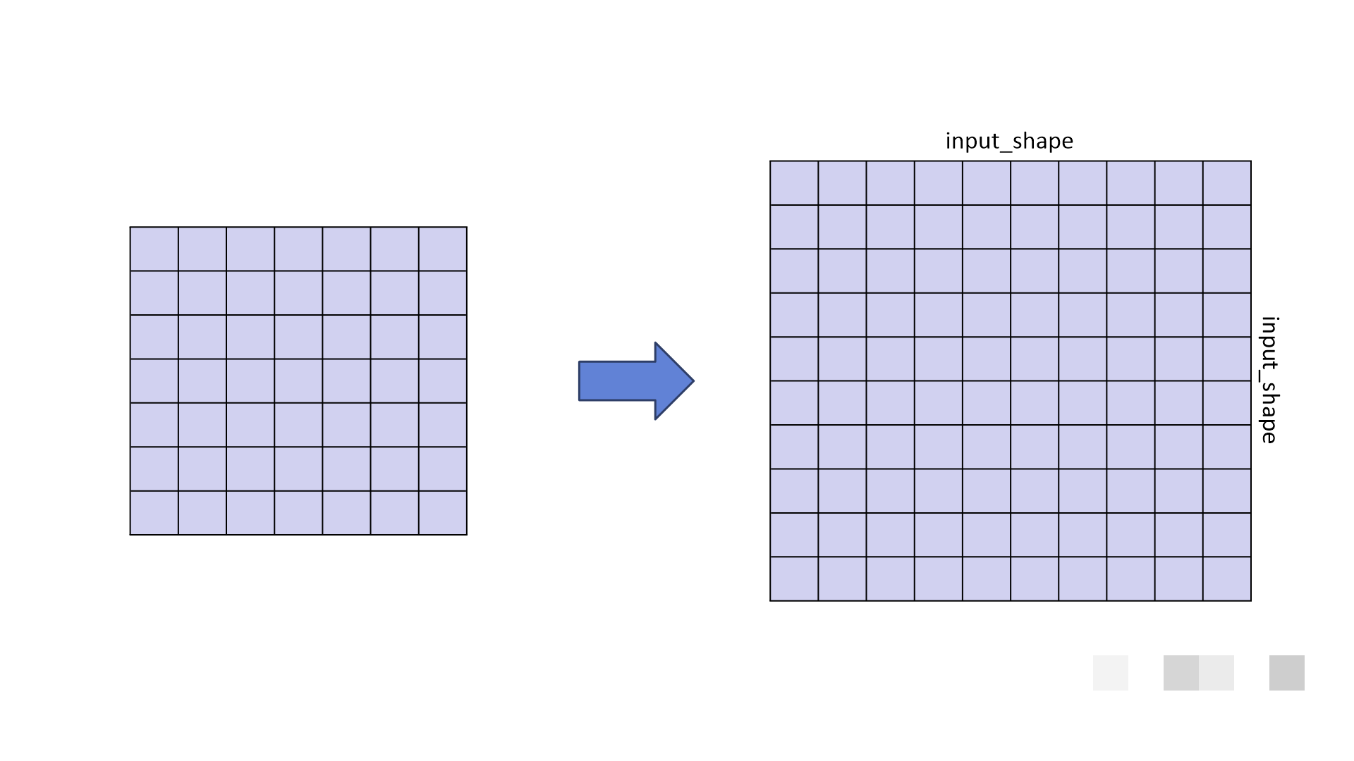 확대와 축소 둘 다 방법이 떠오르지 않았었습니다. 그래서 확대를 해야 하는 경우는 Zero Padding을 하고, 축소는 input_shape에 맞게 Cropping을 해줘야겠다 싶었습니다.