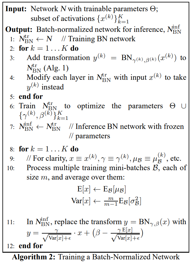 ๊ฒฐ๊ณผ์ ์ผ๋ก Batch Normalizaing Transform์ ๋ํด ์ ๋ฆฌํ๋ฉด ์๋์ ๊ฐ์ต๋๋ค.