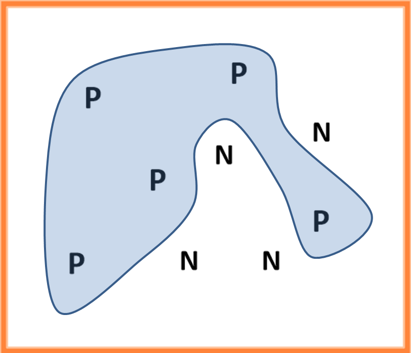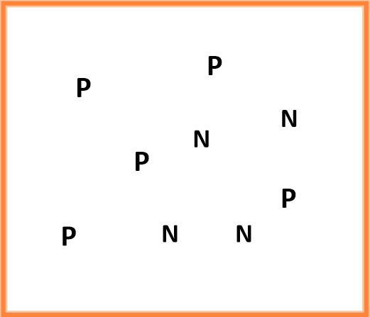 한 케이스를 예를 들어 설명하겠습니다. 아래와 같이 P(Positive)가 5개와 N(Negative)이 4개인 데이터들이 있습니다.