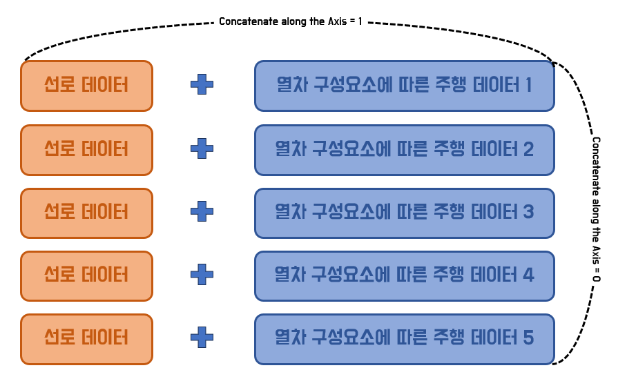 우선 데이터셋은 주행에 대한 데이터셋, 선로에 대한 데이터셋 크게 2가지로 나뉘었습니다. 주행에 대한 데이터셋은 열차의 구성 요소 중 하나에 따른 데이터로 5개의 데이터셋이 존재했습니다. 그리고, 모든 데이터셋들은 거리에 따른 정보였습니다.