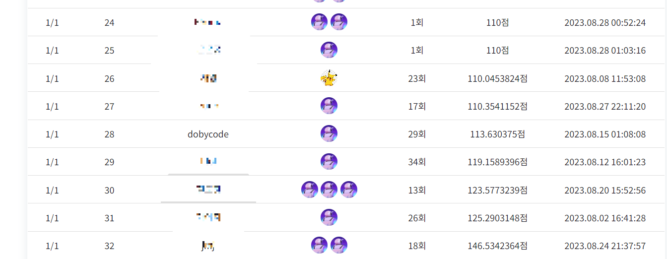 본 포스팅은 23.08.01 ~ 23.08.28의 대회 기간에 관한 로그입니다.