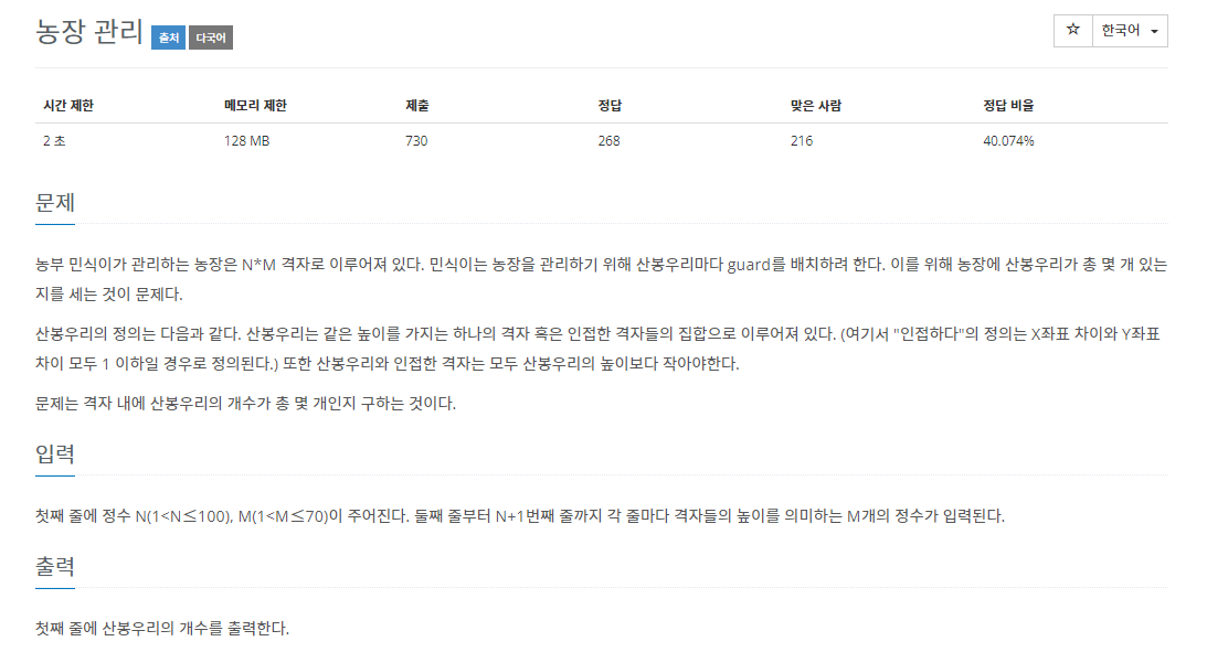 | [알고리즘] 백준 2468번: 안전 영역 (C++), 최소 조건을 확인하라 (0) | 2021.10.20 |