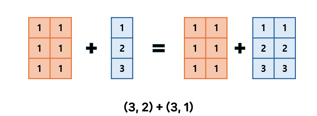 ๊ทธ๋๋ ์ ์ด๋ ์ด์ ๋ ๊ณต์ ๋ฌธ์์ ๋์์์๊ธฐ ๋๋ฌธ์ด๊ณ , ์ด๊ฒ์ด ๊ฒฐ๊ตญ์๋ Broadcasting์ด๋ผ๋ ๊ฐ๋ ์ ์ดํดํ๋ ๋ฐ์ ๊ฐ์ฅ ๊ธฐ์ด์ ์ธ ์์์ด๊ธฐ ๋๋ฌธ์ ๋๋ค.
