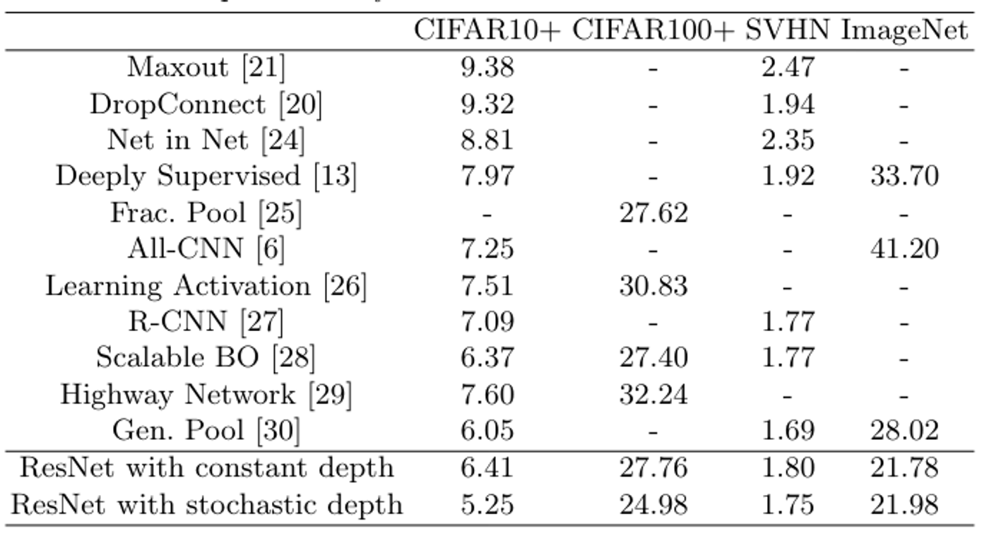 ์ด๋ฅผ ์ฆ๋ช ํ ์ ์๋ ๊ฒฐ๊ณผ๋ก ๋ฒค์น๋งํฌ ๋ฐ์ดํฐ์ ์ ํ์ต์์ผ Test error๋ฅผ ์ฌ๋ฌ ์ฐ๊ตฌ๋ค๊ณผ ๋น๊ตํ ๊ฒฐ๊ณผ, ํ์คํ ๋ ์ฑ๋ฅ์ด ์ข์์ ๋ณด์์ต๋๋ค.