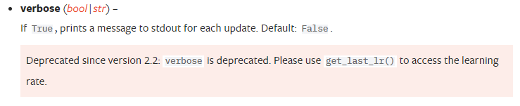์ด์ ๋ ์ค์ผ์ค๋ฌ์ ๋ํด์ verbose argument๋ฅผ ์ง์ํ์ง ์๊ฒ ๋ค๋ ๋ด์ฉ์ด์์ต๋๋ค. ํ์ง๋ง, ์ค์ผ์ค๋ฌ์ ๋ํ ๋ฉ์๋ get_last_lr()์ ์ฌ์ฉํด ๋ณด๋ผ๊ณ ํฉ๋๋ค. ์ด ๋ฉ์๋๋ ์ค์ผ์ค๋ฌ๊ฐ ๋ง์ง๋ง์ผ๋ก ๊ณ์ฐํ Learning Rate๋ฅผ ์ถ๋ ฅํ๋ฉฐ, ์ด๋ 'ํ์ฌ ์ํฌํฌ์์ ์ด๋ ํ Learning Rate๋ก ํ์ต์ ์งํํ๊ฒ ๋๋๊ฐ'๋ฅผ ์๋ฏธํฉ๋๋ค.