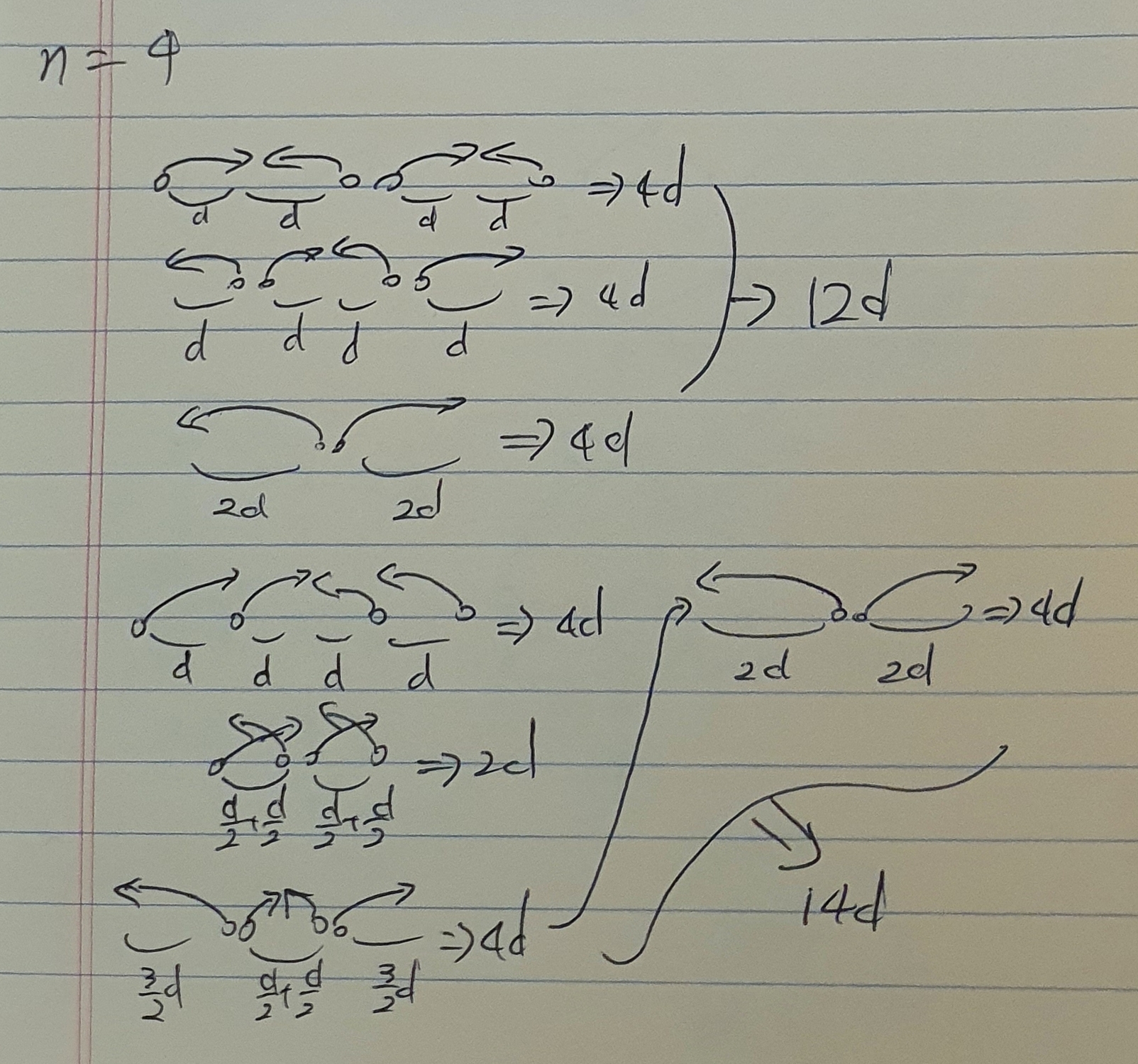 2마리인 경우에서 사용한 그림을 그대로 가져왔다. 반박하고자 하는 내용을 보자면 '1번 개미가 뛰어내기 직전까지의 걸린 시간이 최대가 될 수도 있지 않느냐'인데