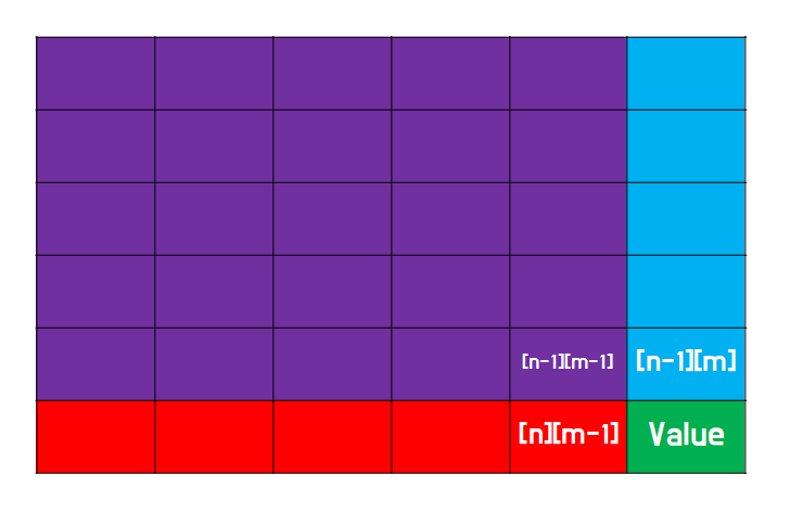 cache[n][m] = cache[n - 1][m] + cache[n][m - 1] - cache[n - 1][m - 1] + value;