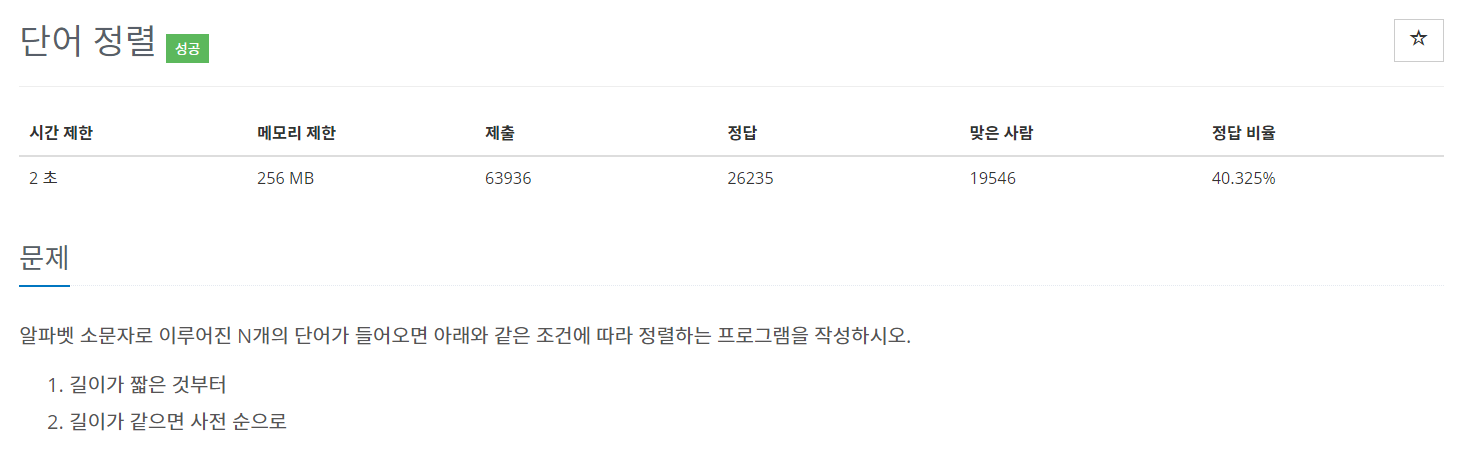 크기가 다를 때는 크키별로 정렬하고, 같을 때는 사전순으로 정렬할 수 있게 해주었다.